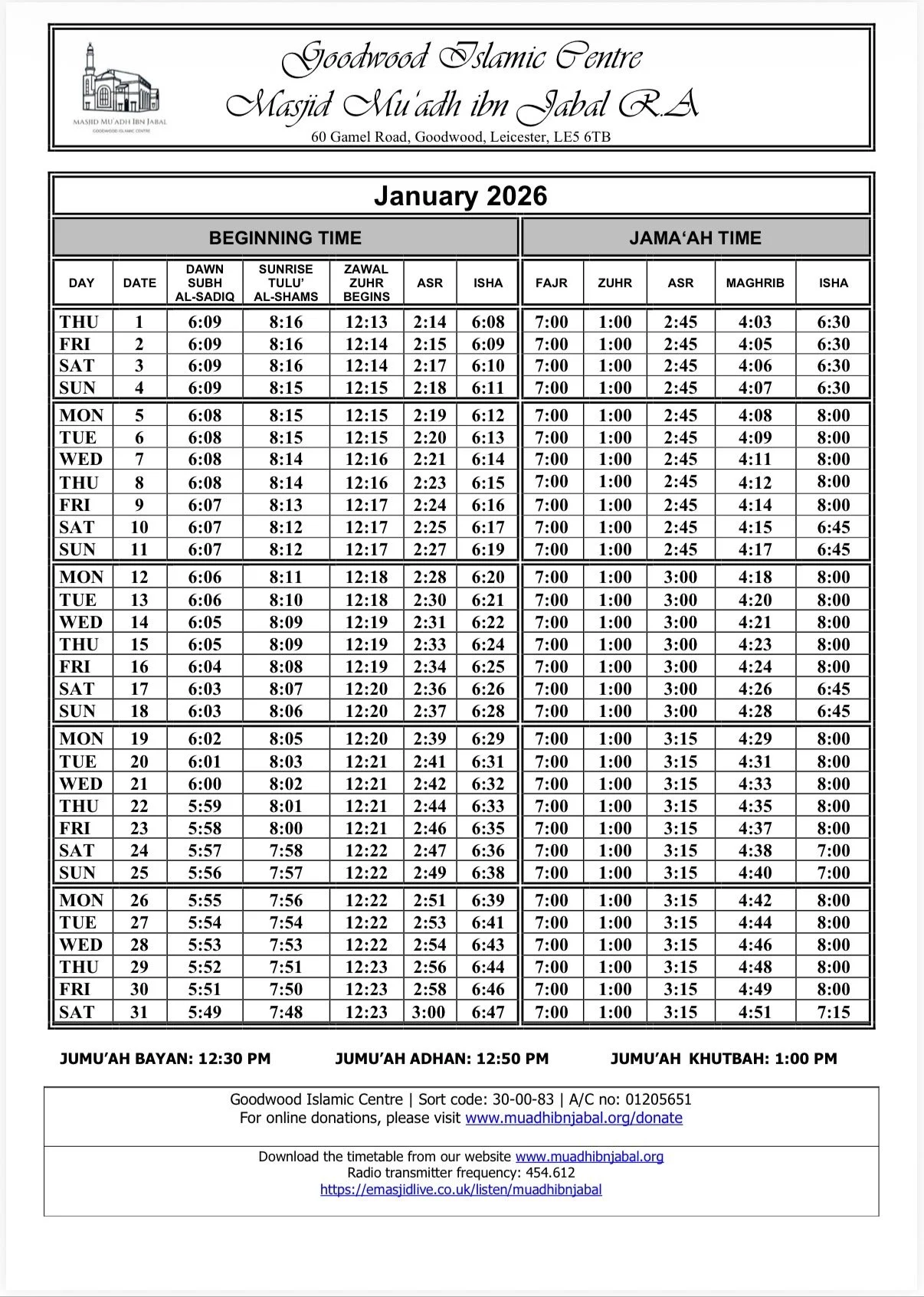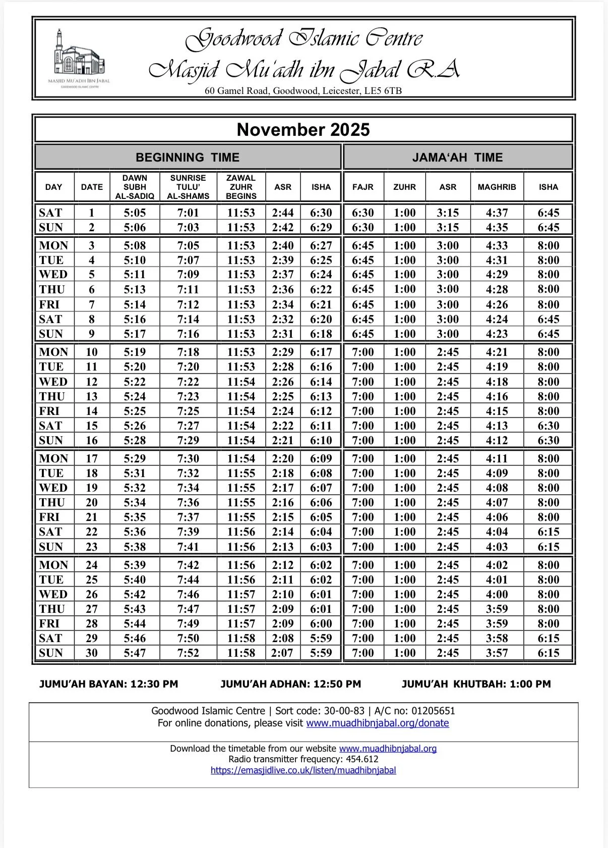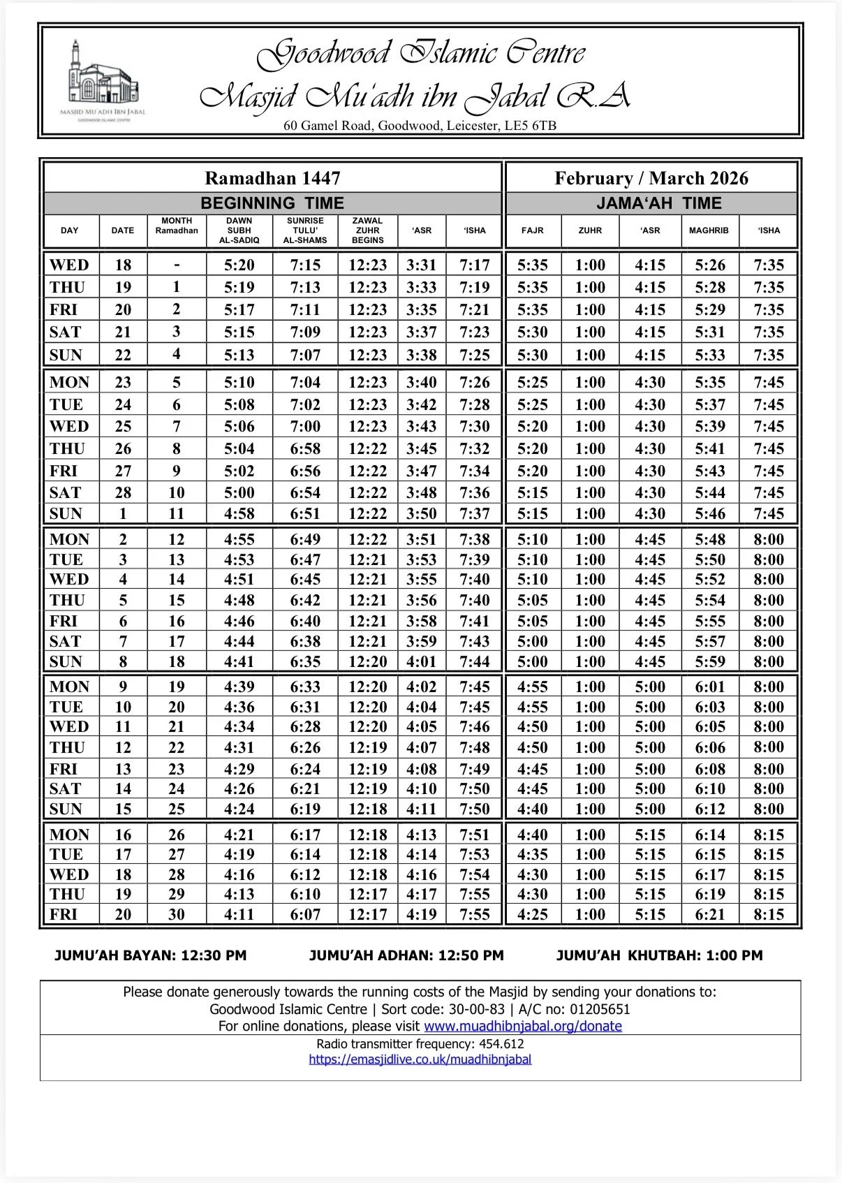 When arriving for Salah please respect the local parking restrictions and consider the safety and convenience of other road users.
