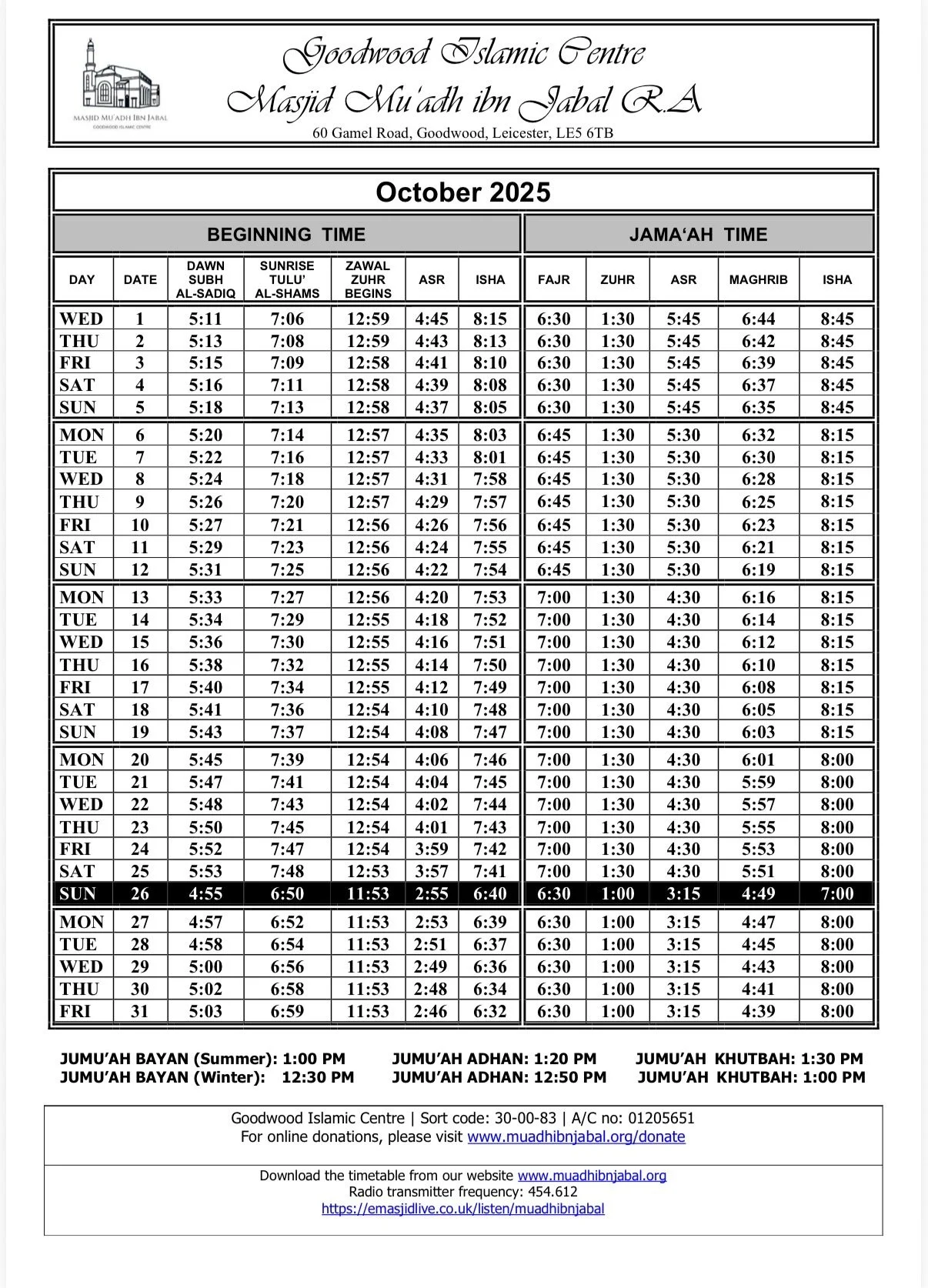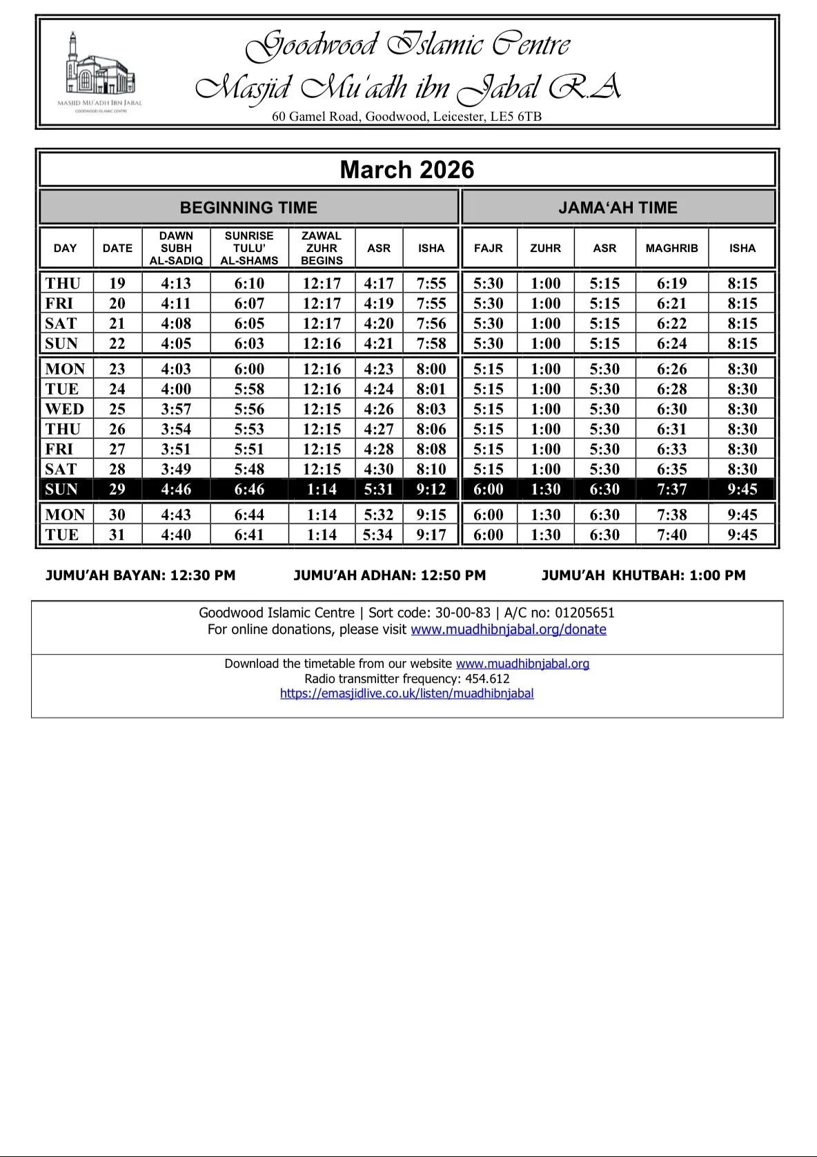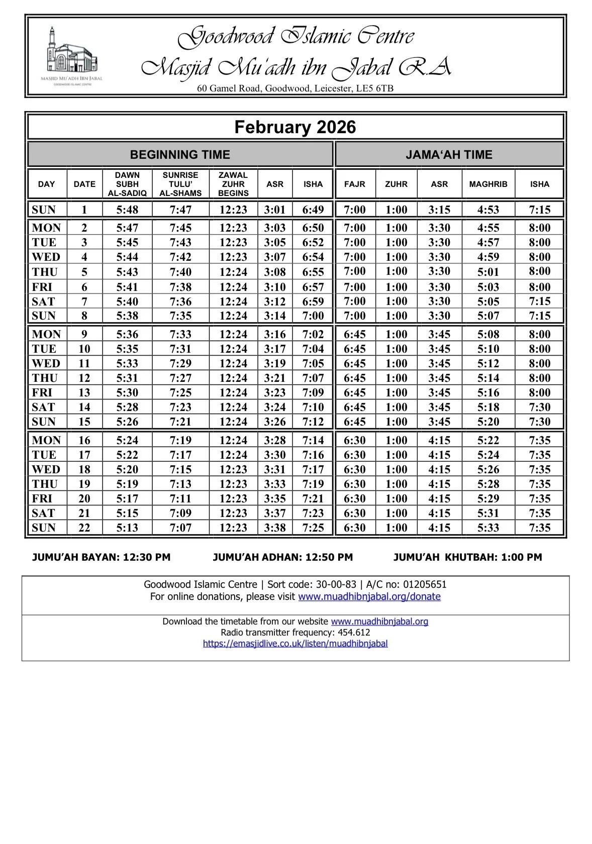 When arriving for Salah please respect the local parking restrictions and consider the safety and convenience of other road users.